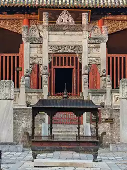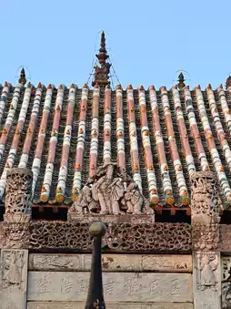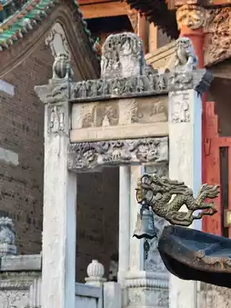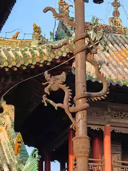 In addition, the huge and gorgeous 'Two Dragons Playing with a Pearl' relief wall is very spectacular. It's 20 meters high and 13 meters wide, made of colored glazed ceramic bricks, with hollowed-out dragon carvings and brilliant colors. This is something that other Shanxi-Shaanxi Guild Halls don't have.