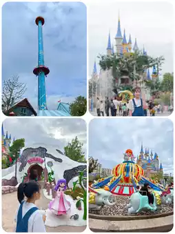 Attractions: Drop tower, rafting, carousel, bumper cars, Flying Elephant, Frog Jump, roller coaster 'not open during the National Day holiday', trampolines, etc., with both thrilling and non-thrilling options to choose from.