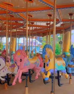 In this theme area, you can see the wish tower that looks like a giant match, which is one of the landmarks of Andersen's Fairy Tale Land! The tower is 65 meters high. Sit on it and slowly rise into the air, then quickly descend. It only takes 3.6 seconds to fall from the top of the tower. The 5-minute aerial experience allows you to experience the ultimate excitement of weightlessness! Dream Knight is the single-story luxury carousel with the largest number of riders in the province. Get on the carousel, embark on a gorgeous romantic journey, and experience a unique and wonderful experience! Come to the flying elephant next to you. As the taxi frame rotates and rises from slow to fast, your feet leave the ground and the speed becomes faster and faster. Enjoy the pleasure of high-altitude flight!