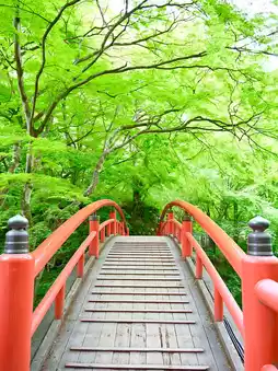 The contrast between the Kawajika Bridge and the fresh greenery is incredibly beautiful, and the babbling of the river is soothing.