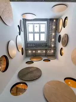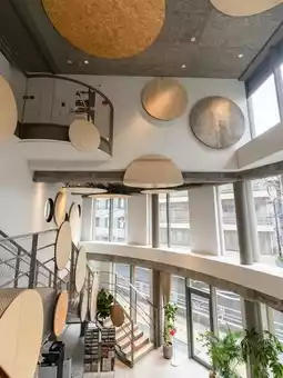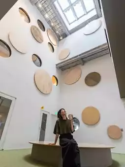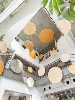 I went to the public complex "SCC Sendagaya Community Center" that opened in April this year and is open to anyone. Designed by Kengo Kuma, the most eye-catching feature is the pattern of circles of various sizes π . From the first floor to the rooftop, there is an open atrium where sunlight pours in through the large windows, creating an open space βοΈβ¨