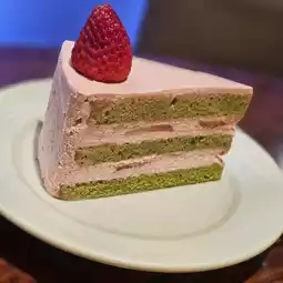 The pink shortcake is less sweet than it looks and has lots of strawberries, making it delicious.