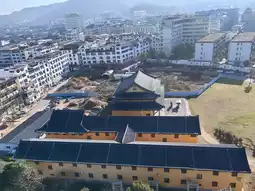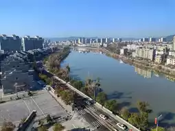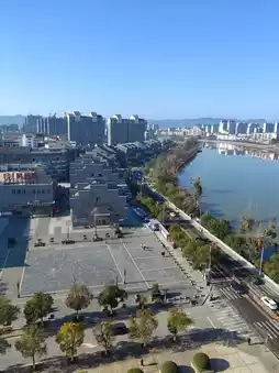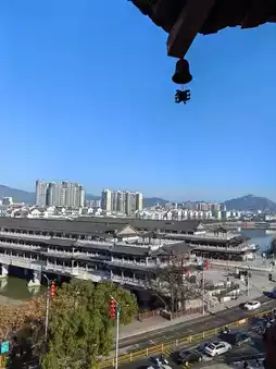 I spent the night in Shicheng. Waking up early, I climbed the Baofu Temple Pagoda, a Song dynasty Jiangnan-style Buddhist pagoda. It has seven tiers and six sides, constructed of brick and wood, resembling a bamboo-jointed steel whip. Its design is exquisitely delicate and beautiful, with a blend of Tang and Song dynasties' charm. Circling the base and passing through the walls to reach the top of the pagoda, I gazed into the distance. The landscape of Shicheng unfolded before my eyes: the mountains and rivers were beautiful, the people hardworking. Coinciding with the Spring Festival, I silently wished for the nation's peace and the people's safety. (Recorded on February 12, 2024)