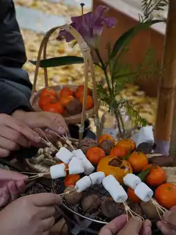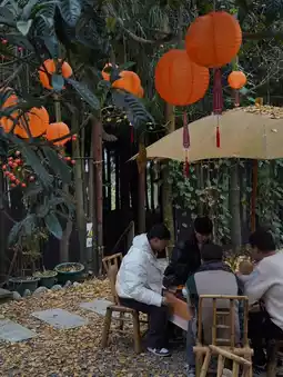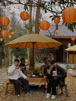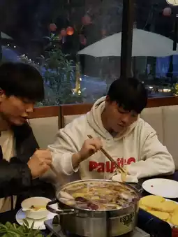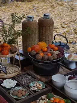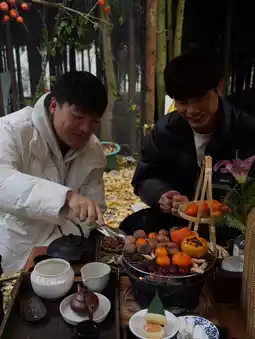 | Soaking in the hot spring and gathering around the stove, a warm gathering in winter.