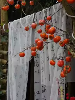 The quaint atmosphere, the dark green pine leaves, the orange persimmons and decorations, what a peaceful time.