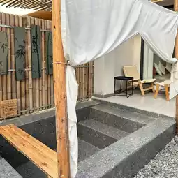 It is located halfway up the mountain in Yinghua Town, Shifang🗻, with parking available at the entrance🚗, and it's quite convenient to get there on foot🚶, not too many mountain roads👌. The overall environment and decor are amazing😍, and the adjacent forest really resembles that of Zhongba Forest Park🎄, perfect for taking photos📷, though I didn't take any haha😜. The guesthouse offers cooked dishes👨🍳, we arrived quite late🕔, and confirmed the time for dinner and soaking in the hot spring during check-in🛀, they prepared everything in advance according to our schedule🤝, including calling us downstairs to eat when the meal was ready👨👩👧👦. The food tasted like homemade dishes🥘, just a small suggestion haha😜, the twice-cooked pork was a bit too salty🧂, maybe use less salt next time~ Everything else was pretty good😋. The suite with a private hot spring is very spacious🎈, with a two-story loft design🎪, and there's a mahjong table in the room🀄, with two separate beds upstairs🛏. I booked the suite through a certain travel app📱, which included a session of tea brewing by the stove➕a hot spring soak🥛, and there were also free snacks, drinks, and fruits in the room🎁, all complimentary💰. They even gave us a small gift when we left🎁, the overall experience was really great👍, and it's especially wonderful to come during the weekdays when it's not crowded👏!