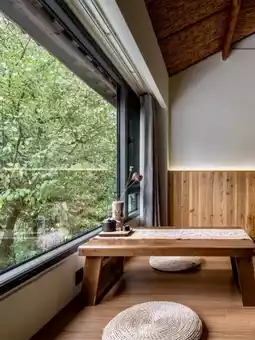 When you walk into Shili Songjian Homestay, you will see three old houses that have been carefully renovated, retaining the original wooden structure and incorporating many Tang Dynasty aesthetic elements. 🏡 The rooms combine modern aesthetics with Taoist Zen, simple yet warm. There are 9 rooms in the homestay, including 5 deluxe king rooms, 1 deluxe standard room, and a duplex suite with a private hot spring. 🛏️ Each room is spacious and bright, equipped with smart toilets, heating, and air conditioning, providing a comfortable living experience. 🌿
