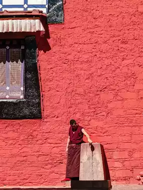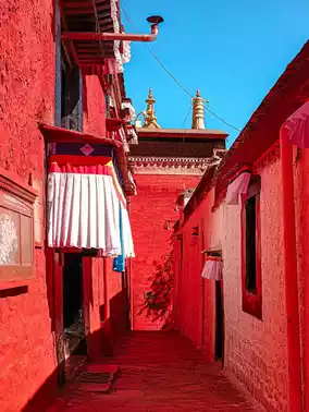 When I walked into Zha Temple, although I had no religious faith, I could feel the grandeur and solemnity of this place, which was different from other Yellow Sect temples. Under the sunlight, the red and white walls create a duality of heat and coldness. The branches of the century-old trees are thick and strong, revealing a vitality that transcends time. The most impressive thing is the 30-meter-high Qamba Buddha, which is the highest bronze Qamba Buddha statue in the world. It is said that it took 110 craftsmen four years to complete and used a large amount of gold and treasures. The Jampa Buddha in Tibetan Buddhism is the Maitreya we are familiar with. Although their appearances are different, they are both future Buddhas who are in charge of human wisdom, well-being, and compassion. At this moment, the golden Buddha shows the majesty of God in the silent Buddhist temple. But if I could really have a conversation with Buddha, I would like to ask him what he thinks of this statue, whether it is pride or a burden, or an irreconcilable obsession of human beings that cannot be transcended. I have never been able to understand why we use worldly treasures to build a concrete statue of a transcendental god or Buddha, and to pray for an unknown future.