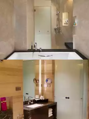 ✅The hotel bathroom is separated into wet and dry areas, the couple's bathtub is large, the overall space is also large, washing and showering are all independently partitioned, and the hygiene is in place. The key is that the quality toiletries are very detailed, and there is also a lighted makeup mirror 🪞, which can take care of the details of the face. It is very friendly. The disposable items are a full set of products imported from the United States, which is very considerate