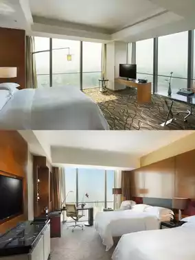 ✅The hotel rooms are fully equipped, spacious, with a large sofa 🛋️, a desk with a lamp, a coffee machine and Philips speakers, an indoor heated swimming pool, a luxurious gym, a SPA center, etc. Hilton has it all~