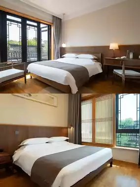 The hotel's landscape is very similar to a Su-style garden, with mountains, water and courtyards. It takes you to a Jiangnan water town in a second. You can wear cheongsam or Hanfu to take beautiful photos here. The scene is so beautiful that you can make a blockbuster movie in minutes.