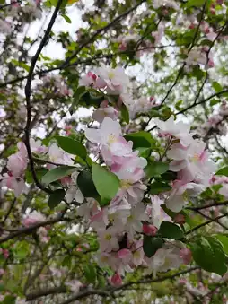 ✔ Cherry blossoms/Chinese flowering crabapple: Now–mid-April