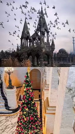 There are not only castles and white doves in the park, but also caves, stone bridges, and pavilions