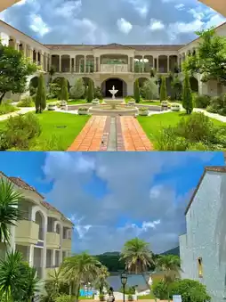 This resort area was designed by a Spanish architect. There's a beautiful fountain plaza in the center, surrounded by white buildings. As you walk in, you'll be immersed in the romantic atmosphere of central Spain and the Mediterranean islands. Taking photos here is amazing, every shot is wallpaper-worthy.