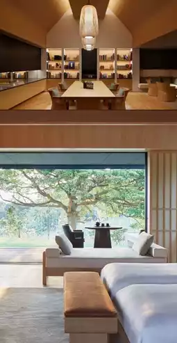 All have private hot springs and are full of rustic charm, echoing Aman Tokyo but with a different flavor. The spacious terraces of the suites allow guests to enjoy the scenery of the four seasons and enjoy views of the bay 🌊 or garden. Each villa has a private hot spring, kitchen, and powder room. An excellent choice for family vacations.