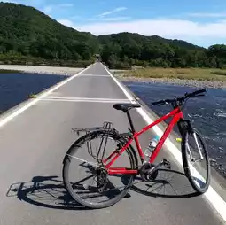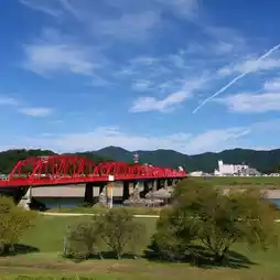 Let's set off, pedal the streets, and soon you will see a red bridge (Shimanto River Bridge, also known as Akatetsu Bridge).