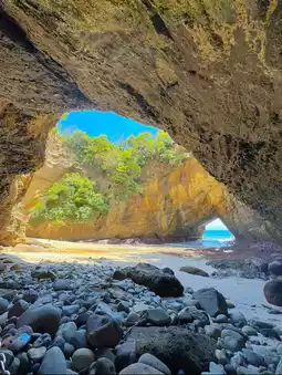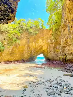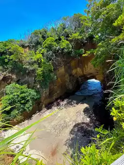 Go down the stairs from the cave entrance and you will find the magnificent Ryugu Sea Cave 🫧 ͛.*The scenery is like Ghibli, just like the world of Porco Rosso ✨