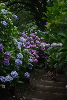 Walking along the paths gently surrounded by hydrangeas,