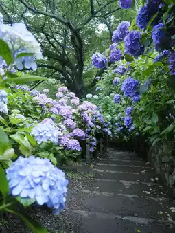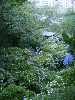 Shimoda Park is located on a small hill at the southern tip of the Izu Peninsula. The park is home to 150,000 hydrangea plants with 3 million blooms, featuring over 100 varieties, making it Japan's largest hydrangea garden. During the blooming season in June, the entire park becomes a colorful kaleidoscope. Besides the vast sea of hydrangeas, visitors can also enjoy views of the Izu coastline.