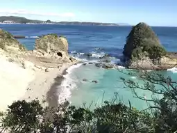 Inside the cave, the contrast between the blue sea and the rugged rock walls creates a magical atmosphere, while the scent of the sea and the sound of waves provide a calming experience. Above the cave is Ryugu Park, where a walking trail leads to a viewpoint offering a full view of the heart-shaped formation. It's a perfect spot for photos, making it highly recommended for couples and married travelers.