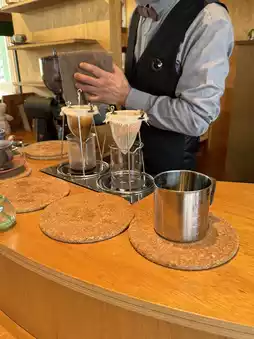 I sat at the counter and enjoyed chatting while watching the owner carefully brew the cloth drip coffee right in front of me