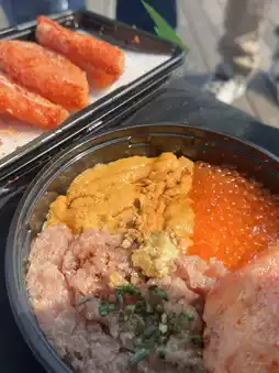 If you come to Shimonoseki and don’t eat pufferfish, it’s a waste of time! We bought a bowl of exaggerated "Unicorn Tricolor Donburi" near Karato Market, which was piled with fresh sea urchin, salmon roe, mentaiko, and tuna paste. Every bite tasted like the sea. And that box of spicy mentaiko was even more fresh and spicy, and the more you eat, the more addictive it becomes.