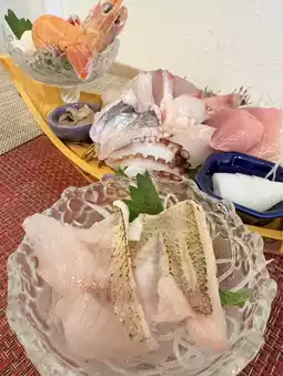 During my trip to Yamaguchi, I visited Karato Market in Shimonoseki. However, due to the overwhelming crowd, I decided against eating there. Instead, I heard about a seafood restaurant nearby that serves fresh fish from 'Uohana,' a fish shop in the market that also supplies to a Michelin-starred restaurant in Singapore. So, I decided to give it a try.