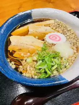 It looks just like ramen🍜, but the garlic in the noodle soup made it a delicious soba✨