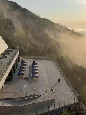 Tomamu's Unkai Terrace offers a breathtaking view early in the morning, accessible via gondola. The sight of clouds spreading below is indescribably beautiful, and enjoying coffee at the café space while welcoming the morning is truly special.