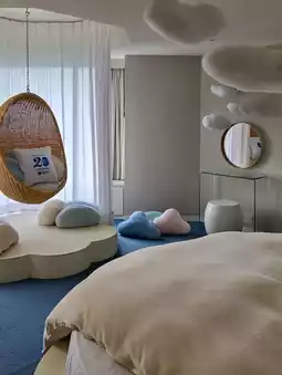Risonare Tomamu features a unique Cloud Suite Room, the only one of its kind within the resort. This special room was created with the idea of allowing guests to experience the beauty of the sea of clouds not only at the Unkai Terrace but throughout their entire stay. Every corner of the suite—from the living room to the bedroom and bathroom—is designed to evoke the feeling of being surrounded by clouds.