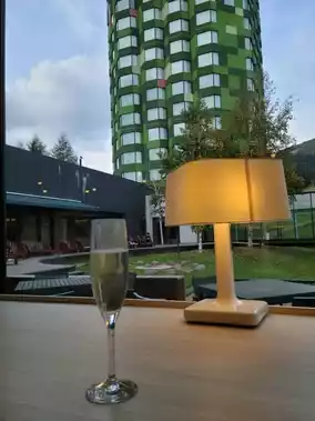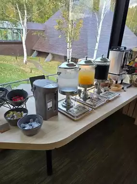 While some restaurants are within a 5-7 minute walk, you'll need to take a shuttle bus to get to more distant restaurants and hot springs, even though it's free.