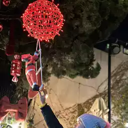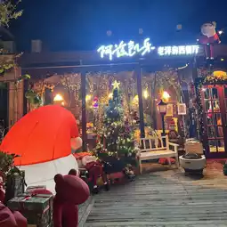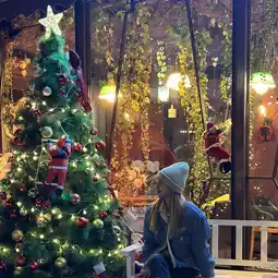The Christmas spirit spills onto the exterior, enticing you to explore the cozy warmth inside.
