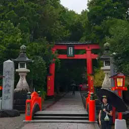 The main deity enshrined here is Kumano Hayatama-Okami, a symbol of rebirth and renewal. It's a place of prayer for health, peace, and a fresh start in life. The vibrant vermilion shrine hall exudes a divine energy even on rainy days.