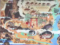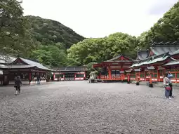 The main deities enshrined are Hayatama-no-Okami and Fusumi-no-Okami. These two deities are responsible for the creation of the Kumano deities, symbolizing the rebirth and new beginnings of all things. The grounds, lined with vermilion-lacquered shrine buildings, have a bright atmosphere that evokes the breath of life. Compared to other Kumano shrines nestled in the deep forest, this one has a more open and cheerful feel.