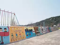 Walk along the shore, while looking at the cats🐈 ~ the cats are lazily sunbathing ☀️ Walk around and you will see a primary school 🏫, this primary school is quite easy to recognize, because the breakwater is painted with colorful patterns 🎨, very cute 📸