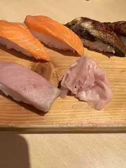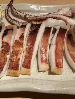 The seating is divided into two sides: one side allows you to watch the sushi chef’s skills, while the other side is convenient for groups of friends to eat, drink, and chat freely. The space is not very large and can accommodate a limited number of guests. You can order sushi à la carte or choose different sushi assortments, with portions that are quite satisfying. When ordering, the waiter will ask if you want wasabi added to the sushi to enhance the flavor experience. Each type of sushi has its own unique character, and choosing your favorites is enough to satisfy you. Besides sushi, you can also order other snacks, such as grilled octopus, which is both refreshing and delicious.