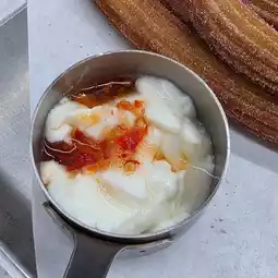 You can choose toppings for the churros, and I tried the most unusual one, sweet chili & yogurt.