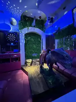 The karaoke floor makes you feel anxious in a good way, wondering if dinosaurs will appear 🤣