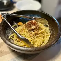 The peperoncino, made using leftover oil from the oyster ajillo, is a luxurious dish infused with the flavors of garlic and oysters. The slight spiciness brings out the rich flavor of the oil, adding depth to the rich taste of the tangled pasta.