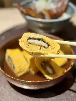The fluffy egg umaki has a gentle sweetness that spreads the moment it enters your mouth, with an irresistible moist texture. The fragrant grilled exterior and the perfectly harmonized eel flavor are exquisite, wrapping you in happiness with one bite.