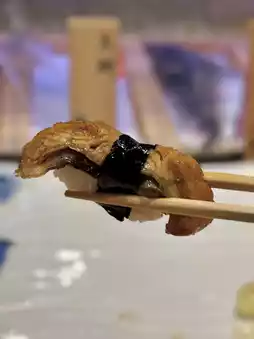 Unagi: Freshly grilled and fragrant, the eel is perfectly coated with the sauce and is absolutely delicious.