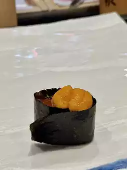Sea Urchin and Salmon Roe Gunkan: A luxurious combination of creamy sea urchin and crunchy salmon roe!
