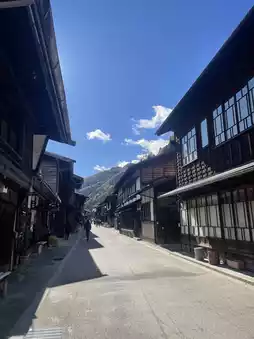 Walk from the train station to the end of the road, you will see Shizume jinja Shrine. Then walk along the Narai River, you will see the signature bridge of the city called Kiso Ohashi Bridge.