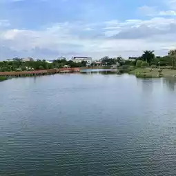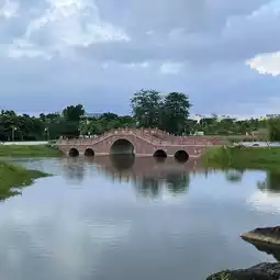 During the landscape transformation, an artificial lake was excavated 💦, a walking greenway 🏃🏻♂️, a lakeside rest pavilion 🏯, a red stone bridge 🌉 and seats 🪑 were built, and plants such as grass 🌱, willow trees, large-flowered crape myrtles 🌳 and frangipani 🌳 were planted to add vitality to the environment 🕊️.