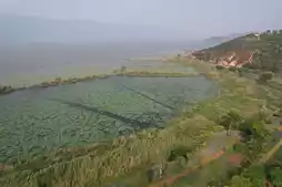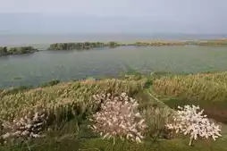 Yilóng Lake has a circumference of 150 li, a water surface area of 39 square kilometers, an average water depth of 2 meters, a maximum depth of about 7 meters, and a water storage capacity of about 100 million cubic meters. Yilóng Lake is the smallest of the nine lakes in Yunnan. Its mouth is in the east, called Hukou River, and is located in Xinjie. There is a water-blocking pavilion built on the river, and the buildings are exquisite and unique. The glazed tiles sparkle. The Hukou River flows eastward through Jianshui, meets the Kuangye River to become the Lujiang River, and then merges with the Nanpan River into the Pearl River. In midsummer, the lotus flowers in the lake compete with each other in beauty and fragrance, attracting many tourists to visit. The lotus has become an indispensable and important tourist resource in Shiping County.