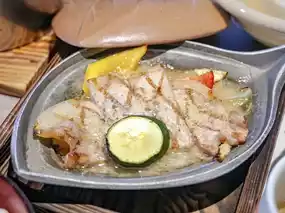 These eight dishes are: sesame tofu; cod (tuna), bream and kanba (red sweet and sour) sashimi; grilled pork; pot dishes with chicken meatballs, shrimp🦐, pork, fish fillets and mixed vegetables; taro buns; vinegar-marinated mackerel; rice with deer tail vegetables (wild seaweed); bean curd soup; pumpkin pudding