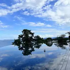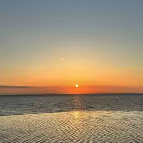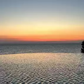 From the panoramic large bath and open-air bath, which are all glass-walled and overlook the ocean below, you can see the beautiful sunset sinking into the horizon✨