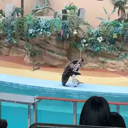 1. Dolphin show - professional, quite exciting, with nearly 8 or so dolphins performing together, the venue is smaller, sitting behind feels very close viewing