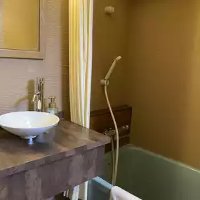 The washroom is relatively small, but there is a small bathtub 🛁, cleanliness satisfactory 😊