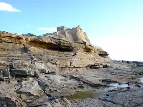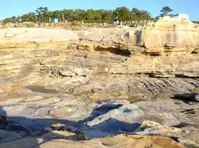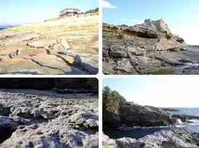 Chiyoshiki means as if there are “more than a thousand pieces of tatami stacked irregularly”. In this zone, the land is a wider area of rocky zone. The rock bed beach at Chiyoshiki was formed after the earthquake of 1792. The rock is made up of softer white sandstone.